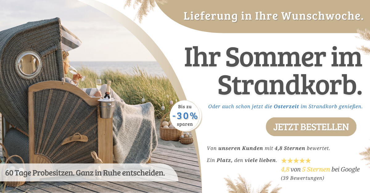 Wenn Sie also das gesamte Jahr hindurch und auch bei kühlem Wetter gerne die frische Luft genießen möchten und über genug Platz in Ihrem Garten, auf Ihrem Balkon oder auf der Terrasse verfügen, ist ein Strandkorb genau das Richtige für Sie!