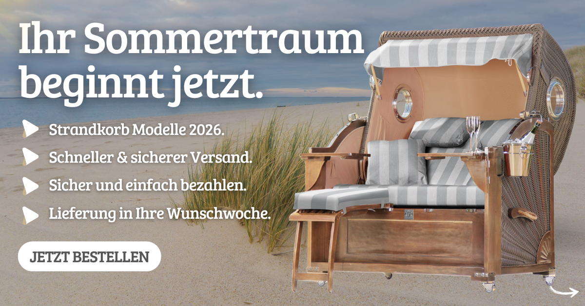 Entdecken Sie bei uns viele verschiedene Strandkörbe und finden Sie genau das Modell, welches perfekt zu Ihren Wünschen passt. Hierzu steht Ihnen ein Team aus geschulten Mitarbeitern zur Verfügung. Egal ob per E-Mail oder telefonisch gerne stehen wir Ihnen mit Rat und Tat zur Seite!
