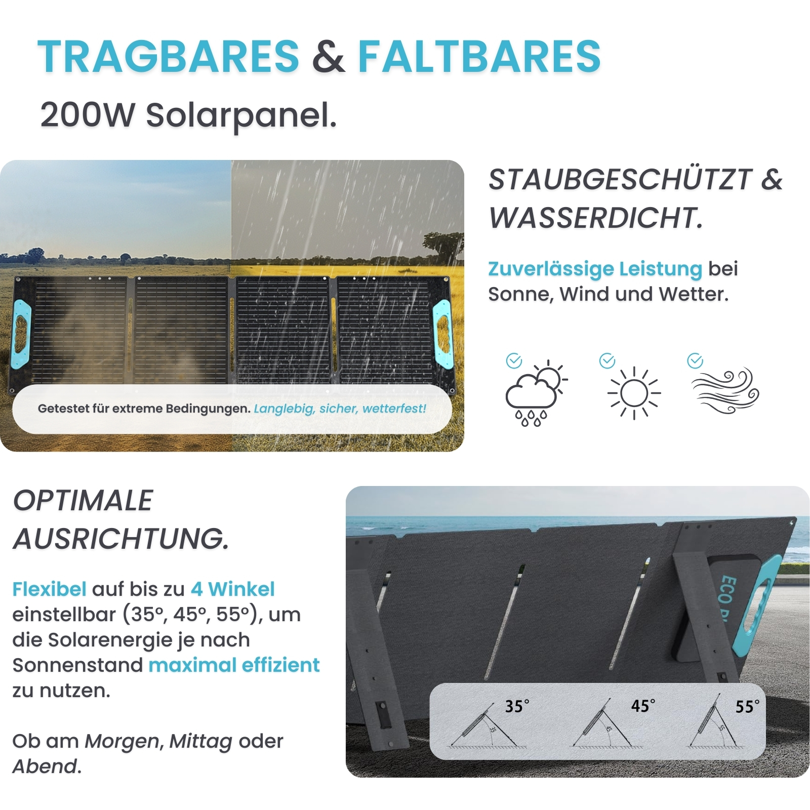 • EcoPlay 2400W + 200W Solarpanel: Die smarte Lösung für autarke Gartenmomente – mit faltbarem Solarpanel für unabhängiges Aufladen, ideal für Gartenhaus oder Terrasse.