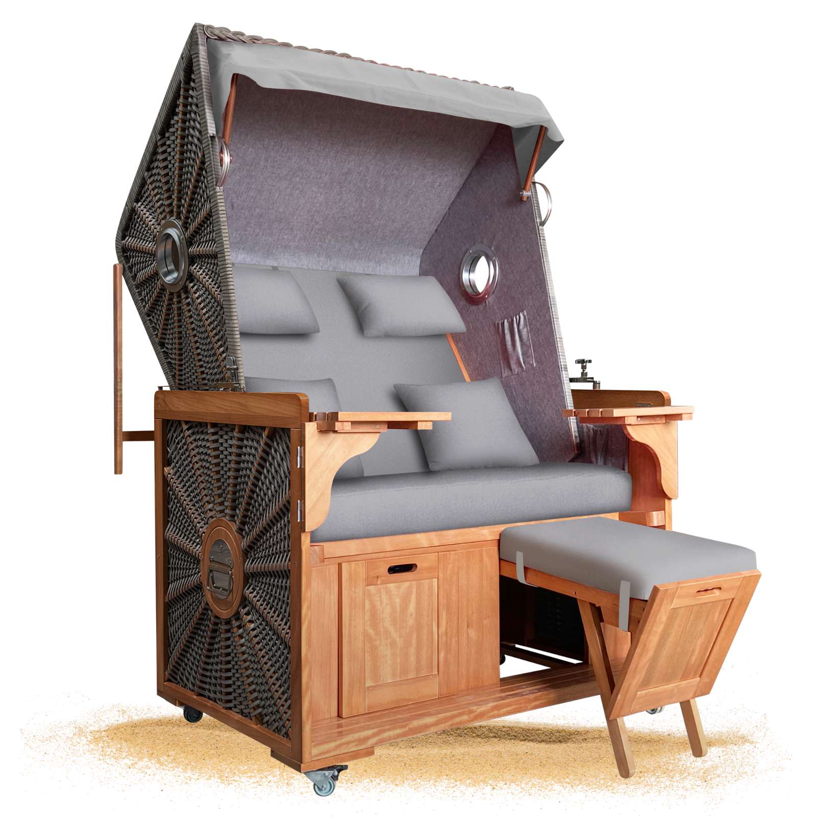 • Vier integrierte Strandkorbrollen für maximale Flexibilität